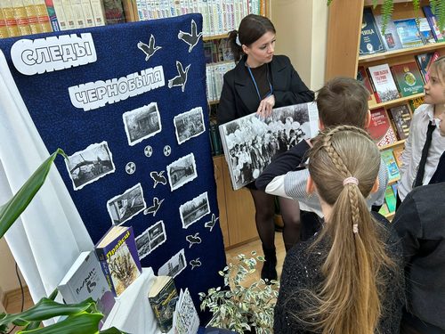 Большой интерес у школьников вызвала книжно-иллюстрированная выставка «Следы Чернобыля», на которой была представлена литература, раскрывающая причины и последствия аварии.