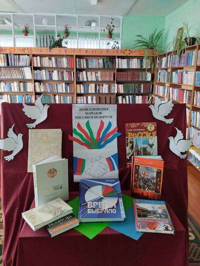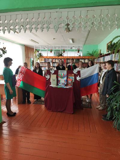 Мероприятие дополнила тематическая выставка «Союзное государство: Беларусь и Россия — шаг в будущее», на которой были представлены книги и информационные материалы об этапах становления и перспективах развития Союзного государства.