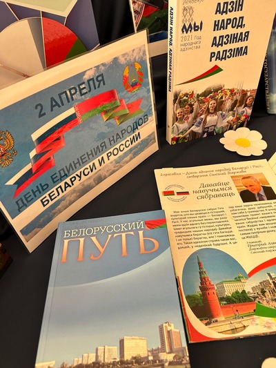 2 апреля отмечается День единения народов Беларуси и России. К этой знаменательной дате в филиале «Городская детская библиотека им. А.П. Гайдара» подготовлена книжно-иллюстрированная выставка «Две сестры – Беларусь и Россия», которая знакомит с символикой России и Беларуси, с народными обычаями и праздниками двух государств, а также с историей и культурой дружественных стран.