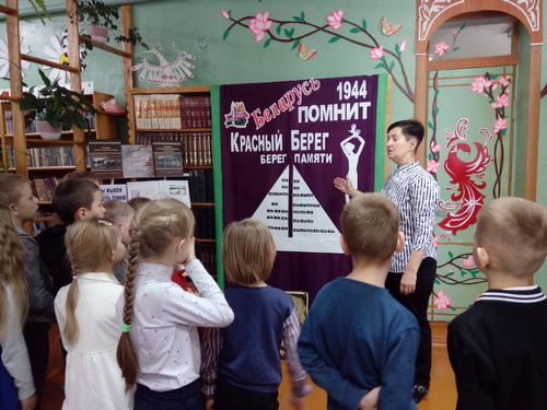 В рамках патриотической акции «Беларусь помнит» в филиале «Озерщинская библиотека семейного чтения» прошёл патриотический час «Красный Берег - берег памяти». Мероприятие посвящено детям, прошедшим фашистский ад. Библиотекарь рассказала детям о мемориале «Памятник детям-жертвам Великой Отечественной войны» в деревне Красный Берег; познакомила с книгами, представленными на книжной выставке «Мы жывём, пакуль помнім»; напомнила о том, как важно беречь мир.