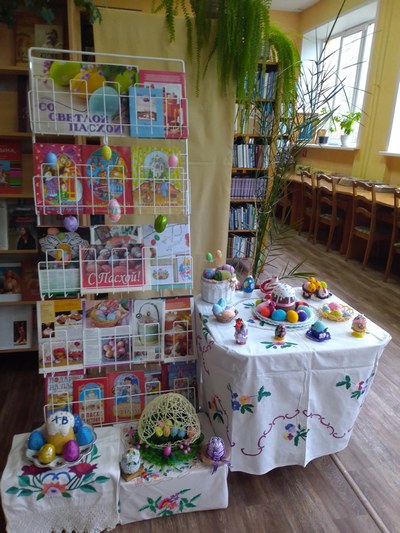 В преддверии светлого праздника Пасхи в библиотеках Речицкой районной сети библиотек оформлены праздничные фотозоны и тематические выставки. Экспозиции знакомят читателей с историей и традициями праздника.