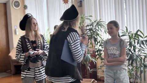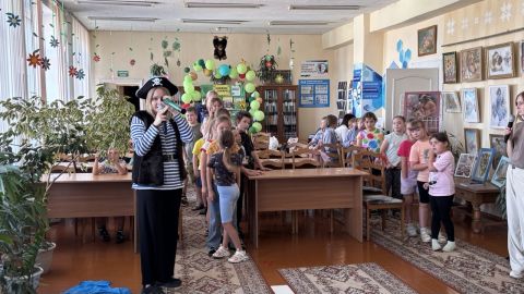 Воспитанники летних школьных лагерей вместе с пиратами отправились в увлекательное путешествие по книжным морям. Вначале ребята разделились на команды и выбрали капитанов, а затем дружно взяли курс на новые знания и приключения.