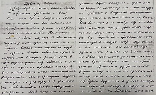 Из письма Сергея Воронина: «Сидишь как в тюрьме, опять стало неспокойно, в Кабуле стали пропадать люди… В туалет приходится идти ночью с автоматом и по два человека. Погода здесь очень жаркая – 60 градусов. Вода отравлена, приходится пить кипяченую в такую жару… Коли со мной нет. Он уехал на передовую в Желобат, и я не знаю, увижу ли я его ещё». Дата 15 мая 1980 г.