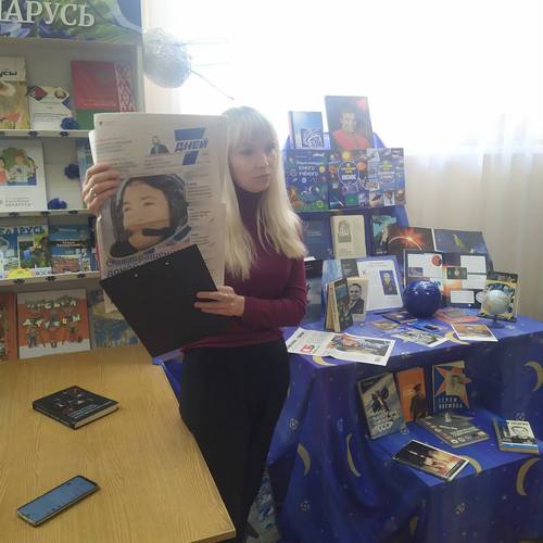 В филиале «Городская библиотека № 2» прошёл час эрудита «Впервые в космосе». Дети совершили увлекательный экскурс в историю освоения космического пространства, узнали, самые яркие имена в космонавтике - имя первого космонавта планеты Юрия Гагарина и имя главного конструктора академика Сергея Павловича Королева, которые открыли дорогу другим исследователям космоса. На мероприятии особое внимание было уделено космическому полёту Марины Василевской, которая стала первой женщиной-космонавтом суверенной Беларуси.